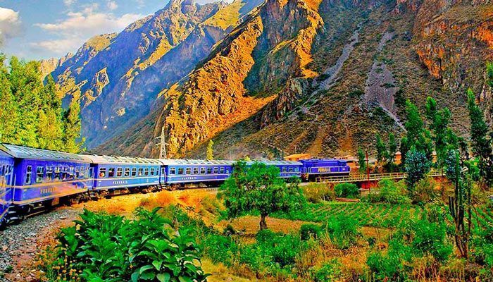 AM pasaremos por su hotel 30 minutos antes del horario de salida del Cusco, lo llevaremos a la estación de trenes ubicado en la localidad de Ollantaytambo (1 hora 30 minutos de viaje en carro) lugar donde abordaremos nuestro tren para luego realizar nuestro viaje con destino al poblado de «Aguas Calientes» (2000 msnm) que tiene una duración de 2 horas.